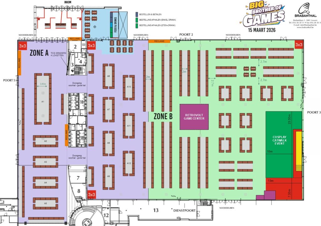 Hier vindt u alle informatie om uw standplaats voor Big Brother of Games vlot te reserveren, inclusief beschikbare zones, tafels en prijzen exclusief BTW.